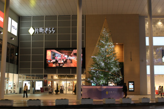 金沢の中心部にある商業施設『片町きらら』の広場に、全長約9mのモミの木が登場し、クリスマスまでの前半は「片町クリスマスツリー」に、バレンタインを終えるまでの後半は「雪吊りイルミネーション」に大変身します。