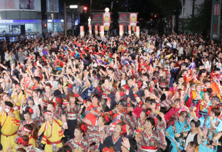 YOSAKOIソーランのステージ演舞やマーチングバンド演奏など、多彩なパフォーマンスが繰り広げられる金沢の夏の風物詩となっています。