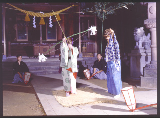 「あっかんぱれ」と呼ばれていた小松市の無形文化財の1つでもある民族芸能である。昔は「ウラヤカシ」と呼ばれる9月の祭礼日の翌日に悪魔祓いが行われていた。