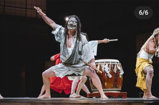 7月31日から8月1日にかけて、地元の白山比咩神社で行われる名舟大祭の折、演奏される太鼓です。沖に浮かぶ舳倉島(へぐらじま)・奥津比咩(おきつひめ)神社から迎えた神が帰社する際、神輿(みこし)の先導役となる太鼓山で演じられます。名称の「御陣乗」は、奥能登で神輿の渡御(とぎょ)を指すゴジンジョ(御神事)にちなみます。夜叉(やしゃ)、幽霊、鬼、達磨(だるま)など奇怪な面をつけた奏者が、地打ちとともに太鼓を打ち込み、最後は回り打ちで激しさを増します。「序」「破」「急」と呼ぶ三段の緩急をつけた独特のリズムが特徴で、主旋律の合間に打ち手はそれぞれ自由に見栄を切ります。奥能登の祭礼における太鼓打ち芸能の代表的なものとして、石川県無形民俗文化財に指定されています。言い伝えによると、1578(天正5)年、能登に攻め込んできた越後の上杉謙信の軍勢を、名舟の漁師が仮面をつけて陣太鼓を打ち鳴らし上杉勢に攻め入ったことで、上杉勢は思いもよらぬ怪物の夜襲に恐れおののいて退散したと伝えられています。