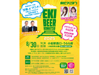 北陸のクラフトビールと小松の魅力を発信する「駅ビア小松」。第3回目となる今年は、「万博×アニメ」をテーマに、北陸の人気ブルワリー8社こだわりのクラフトビールと、万博イヤーにちなんだ世界の料理と音楽をお届け。