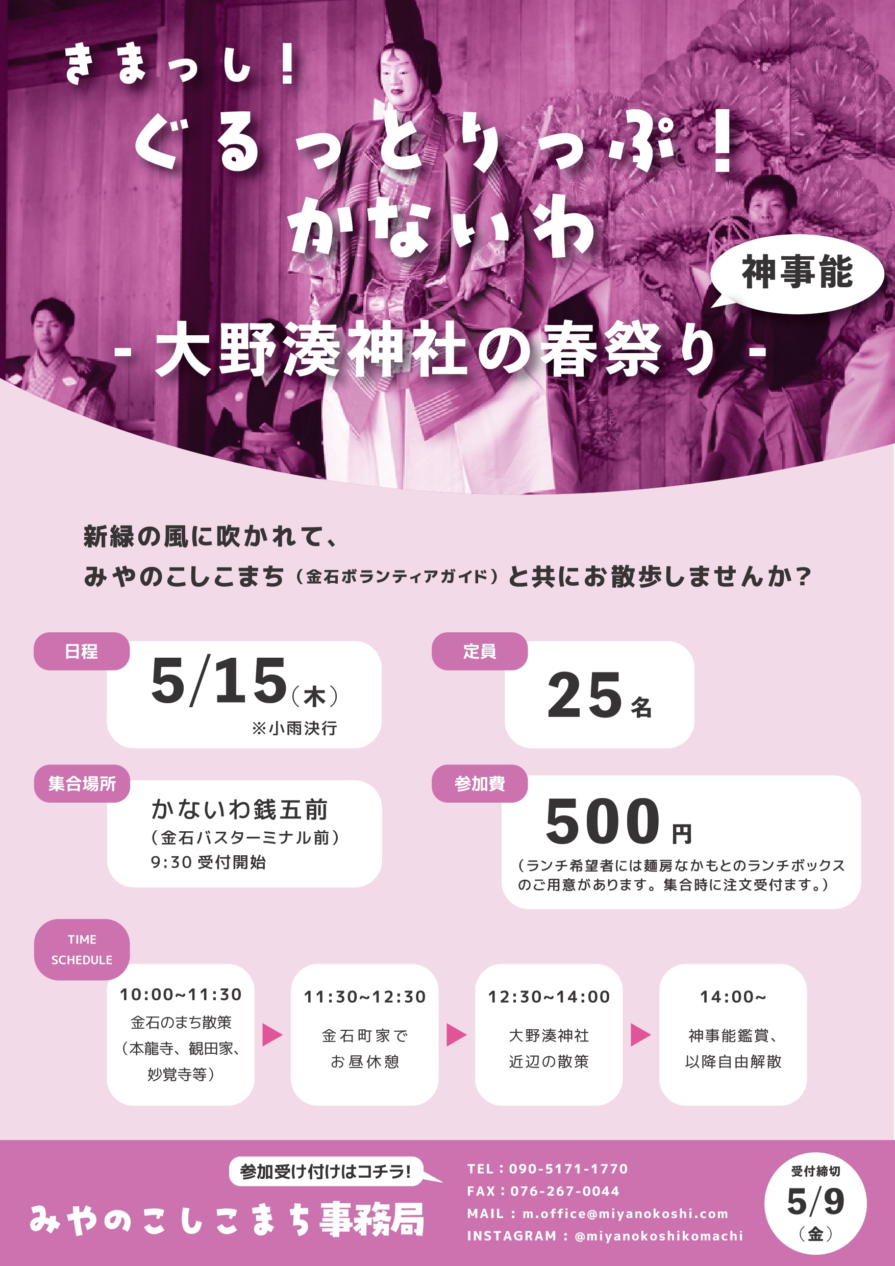 大野湊神社の春祭り・神事能鑑賞~以降自由解散 14:00~