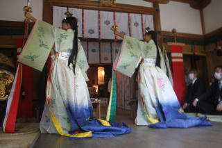 湊町は朝から各町個性のある獅子舞で賑わい、橋立町の出水神社では土曜の午前中に法要と浦安の舞が行われる。