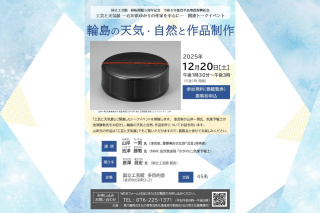漆芸家の山岸一男氏、 気象予報士の池津勝教氏をお招きし、輪島の天気と自然、作品制作についてお話を伺います。