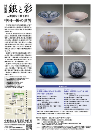 令和7年(2025)10月に陶芸技法の「釉下彩」で重要無形文化財保持者(人間国宝)に認定された中田一於氏を称え、記念の展覧会を開催します。