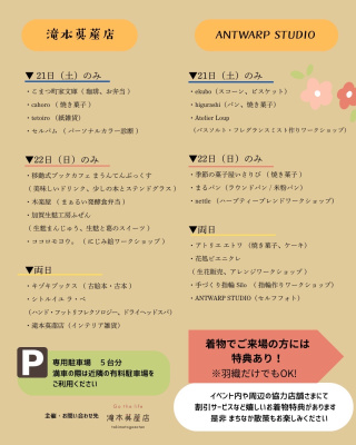【場所】滝本茣蓙店、ANTWARP STUDIO(小松市龍助町30、龍助町26)