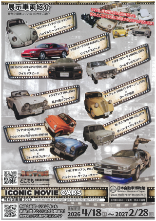 日本自動車博物館 2026 特別企画展「ICONIC MOVIE CARS ~ クルマで感じる映画の世界 ~」