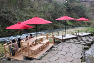 北陸随一の渓谷美を誇る鶴仙渓の名所「鶴仙渓 川床」 渓谷の深い緑、清らかな水の流れ、野鳥のさえずり…。清らかな川のせせらぎを耳に、春は新緑、秋は紅葉を眺めながら、ここにしかない風情あるひとときをお過ごしください。