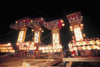 キリコの乱舞と神輿と曳山の駆け引きが見もの。