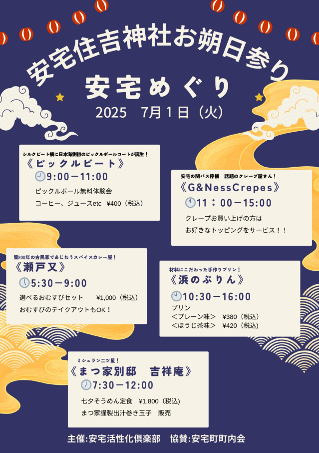- ひと風呂浴びて、夕涼みがてらお寄りください。※雨天・荒天時は中止となる場合があります。 当日の開催については片山津温泉公式サイトをご覧ください※2025年度のうきうき縁日は終了しました