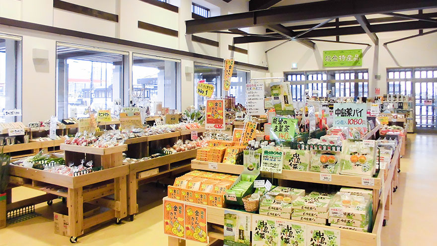 生産者が丹精込めて栽培した朝採り野菜を中心に、能登豚や朝獲れ鮮魚などが購入できる道の駅「織姫の里なかのと」。