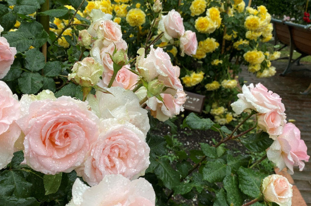 能登町にあるやなぎだ植物公園のバラは、2021年4月に新しくできた英国式の庭園「イングリッシュガーデン」内で鑑賞することができます。石敷きのおしゃれな空間にはバラ以外にも多様な花々が植えられており、憩いの場となっています。