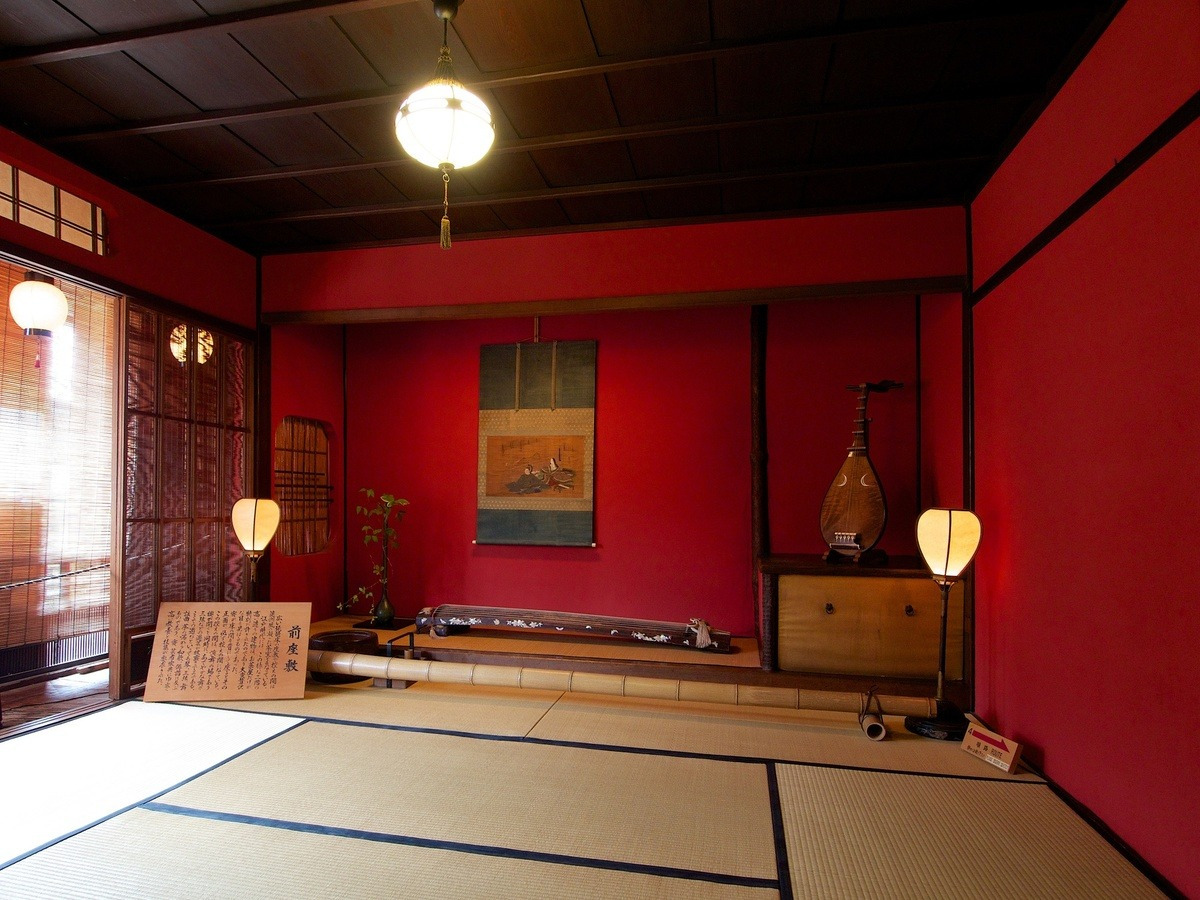 江戸時代そのままの建物が残る、国指定重要文化財の「志摩」では昔ながらのお茶屋を見学でき、当時の三味線なども展示されています。庭を眺めながらお抹茶をいただくこともできます。