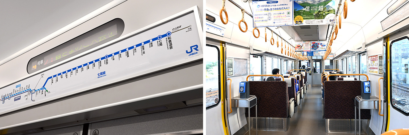 「金沢駅」から「七尾駅」までは「IRいしかわ鉄道」「JR七尾線」を乗り換えなしの1本で約40分です。乗車中は七尾へ近づくにつれ、少しずつ車窓に震災の影響が垣間見えるようになってきました。