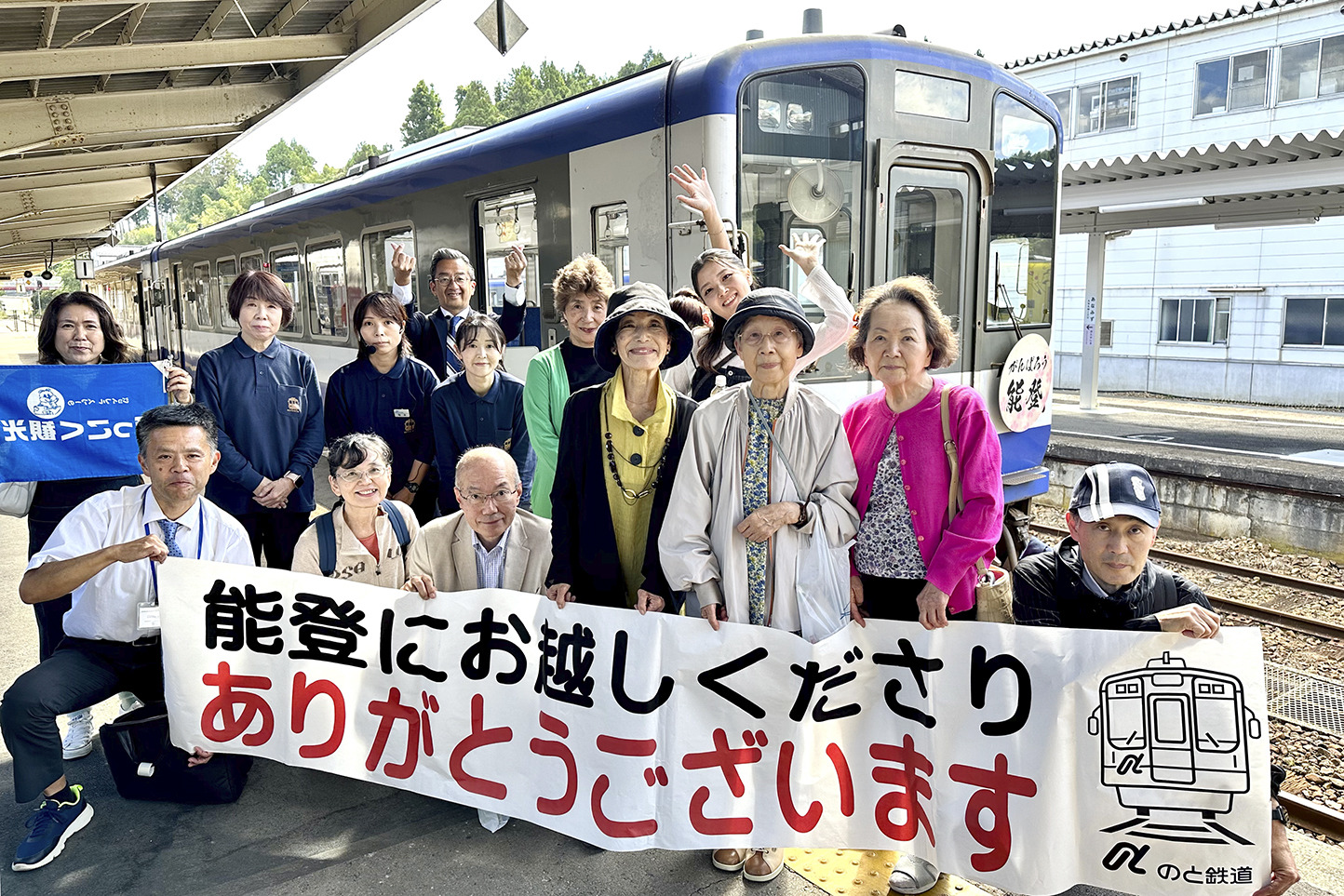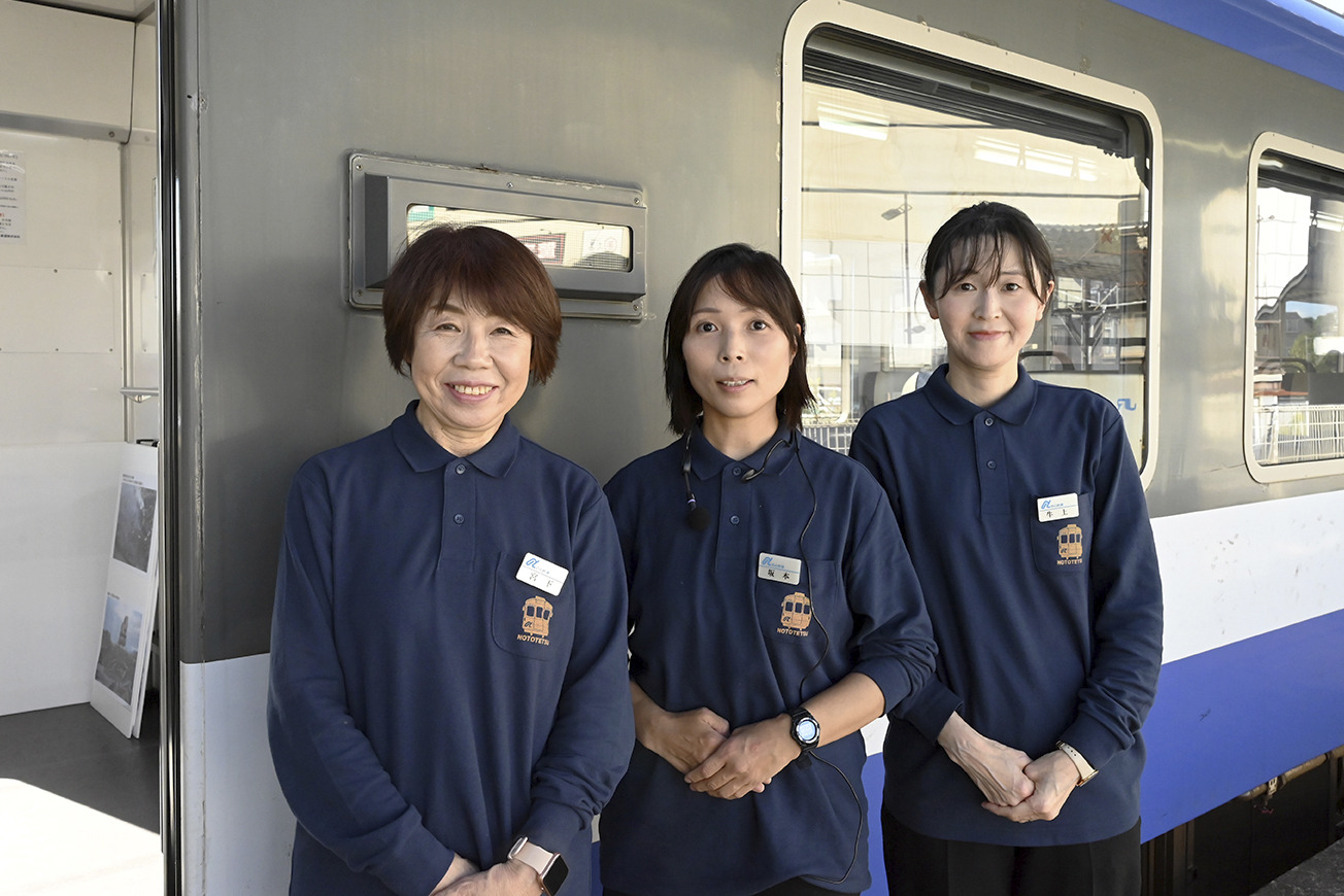 - 震災以降、辛いこと、悲しいこともたくさんありましたが、人の温かさや能登の自然のおかげで元気を取り戻すことができました。「語り部列車」では私自身の体験談はもちろん、各地での被災状況も丁寧にお伝えできたらと思っています。私たちのお話を通して、能登の魅力もあらためて感じていただければうれしいです。