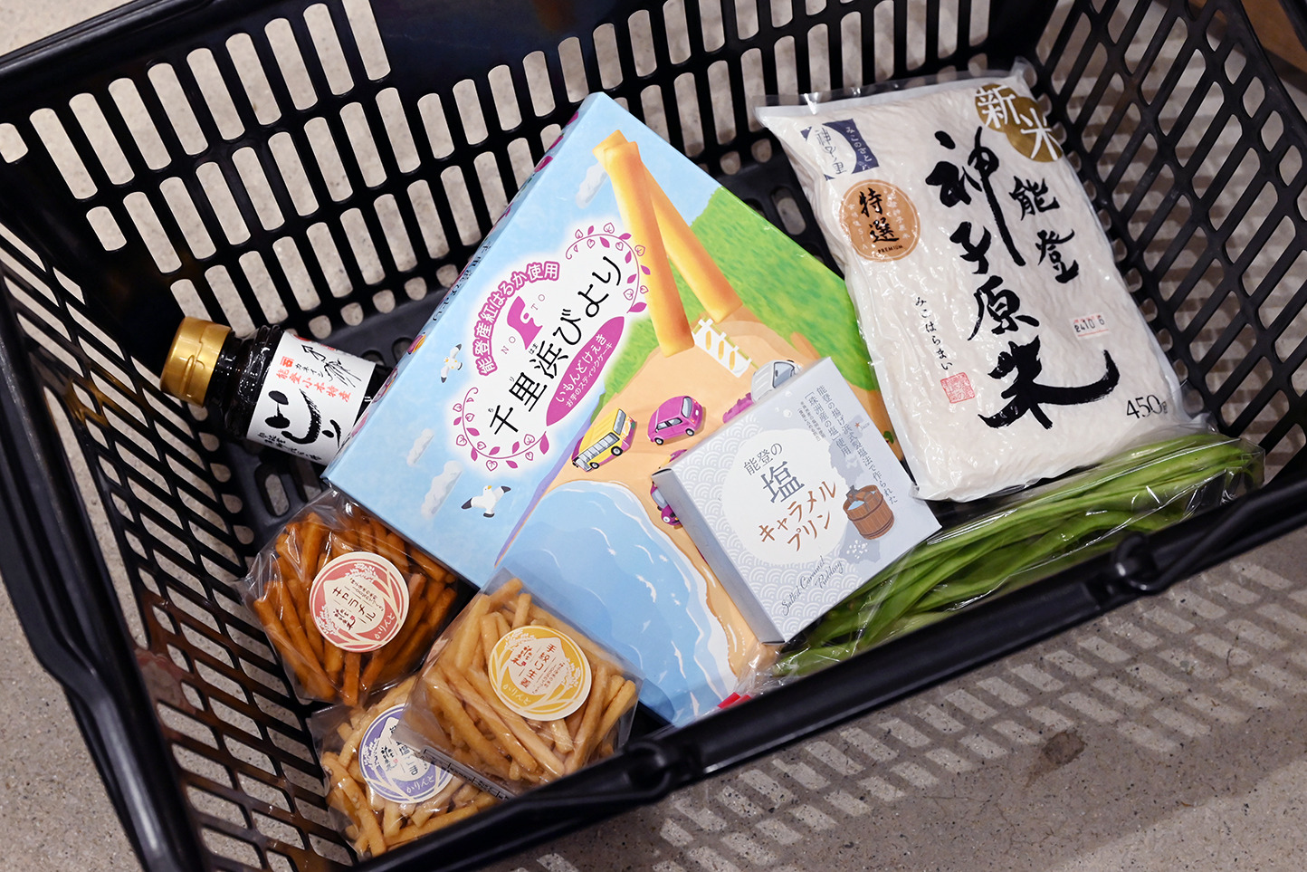 滞在は短時間でしたがお買い物を楽しむことができました。店内にあるベーカリーで焼いたパン、特産のお米やサツマイモを使ったお菓子、地酒や調味料、ローマ法王に献上したことで知られるブランド米「神子原米」、海産物の加工品、地元の農家さんが育てた野菜類など、能登産の食品の品揃えが充実していました。