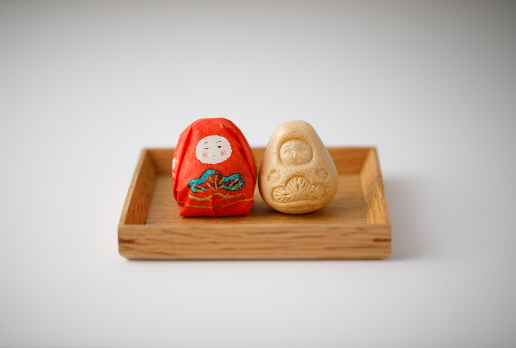 - 愛らしいフォルムが特徴的。起き上がりの形が縁起の良さを感じさせるお菓子です。