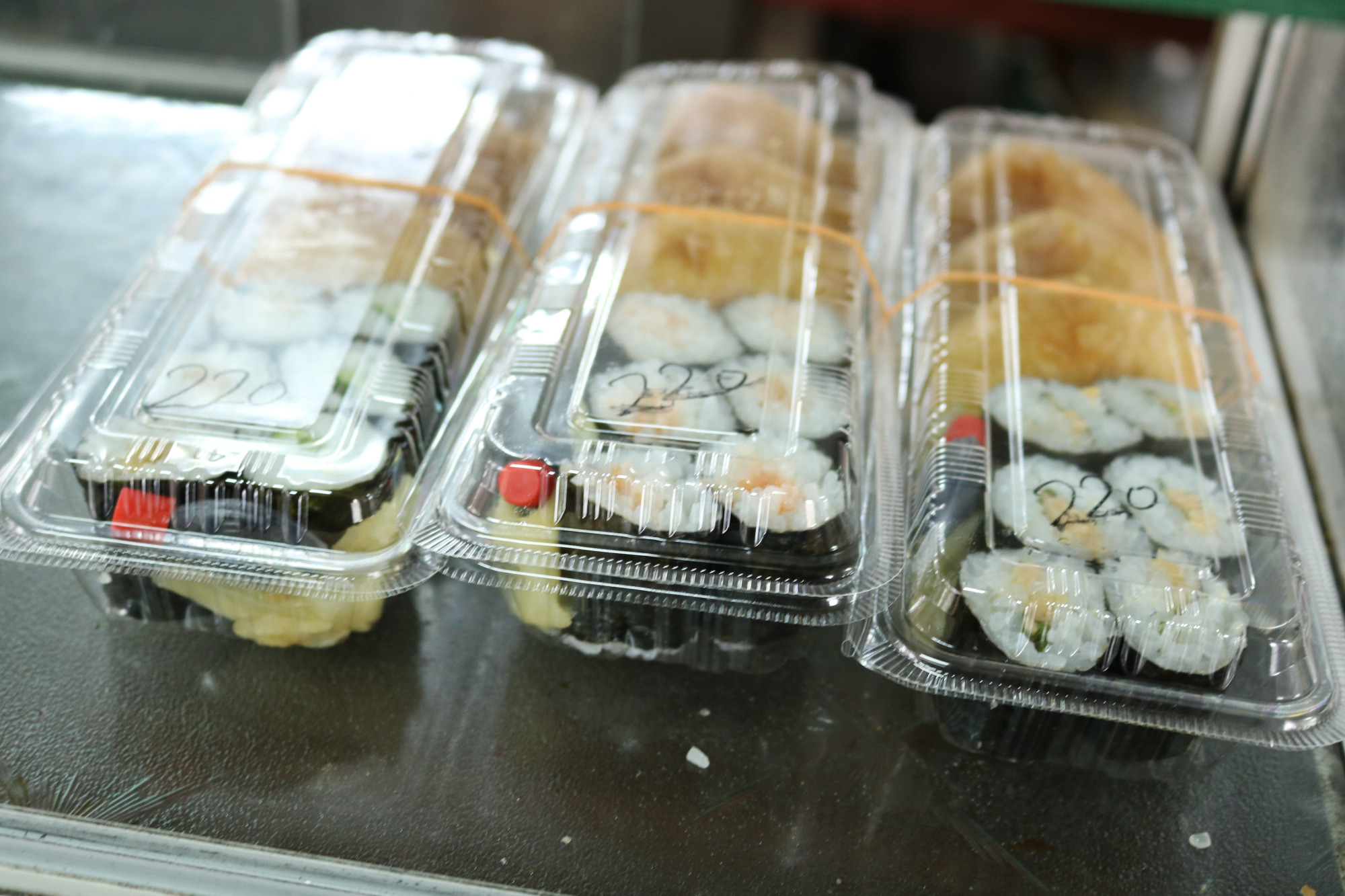 手巻き寿司は全9種類で、なんと1本100円!お寿司の詰め合わせも220円~270円と非常にリーズナブルです。