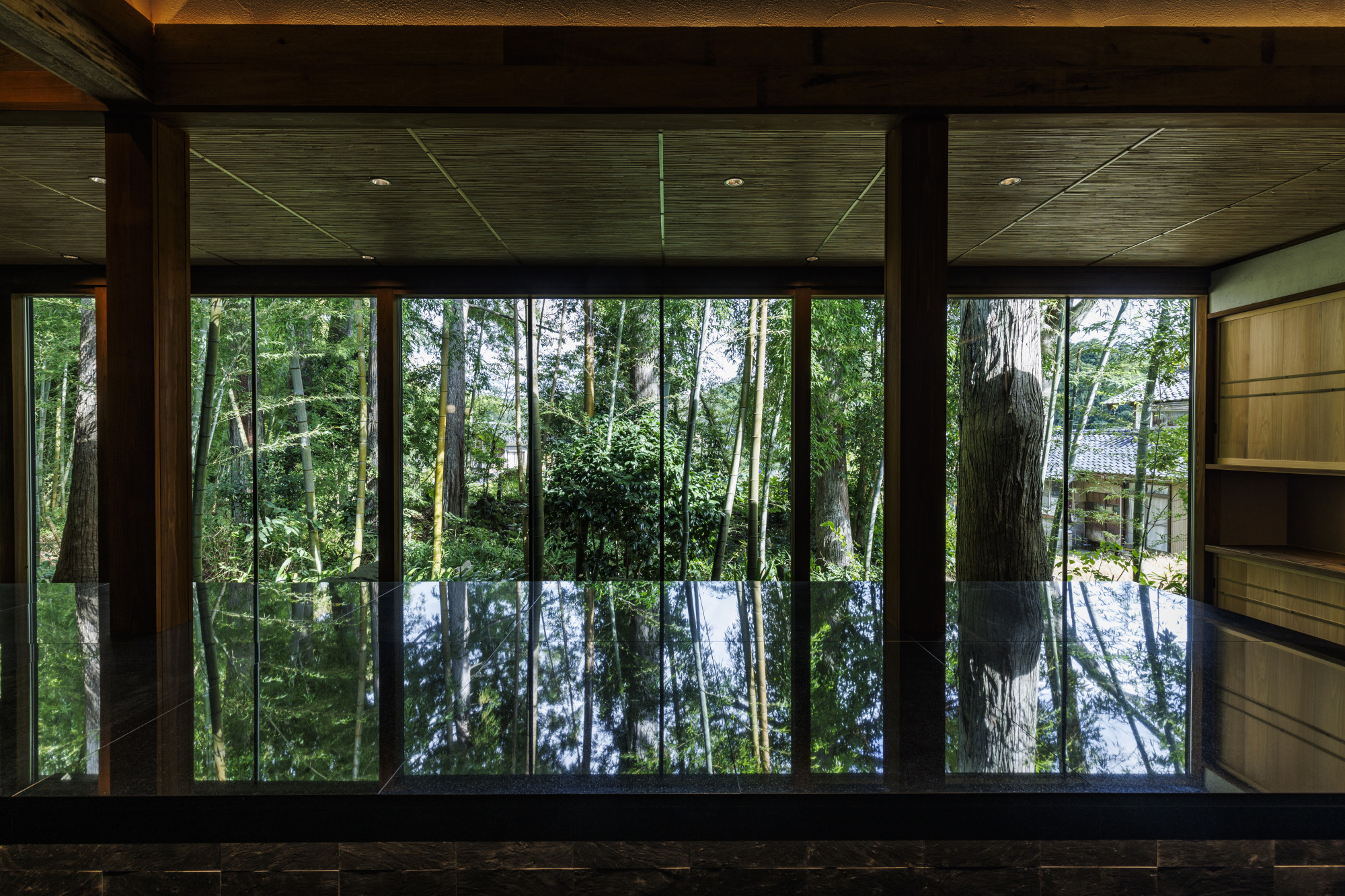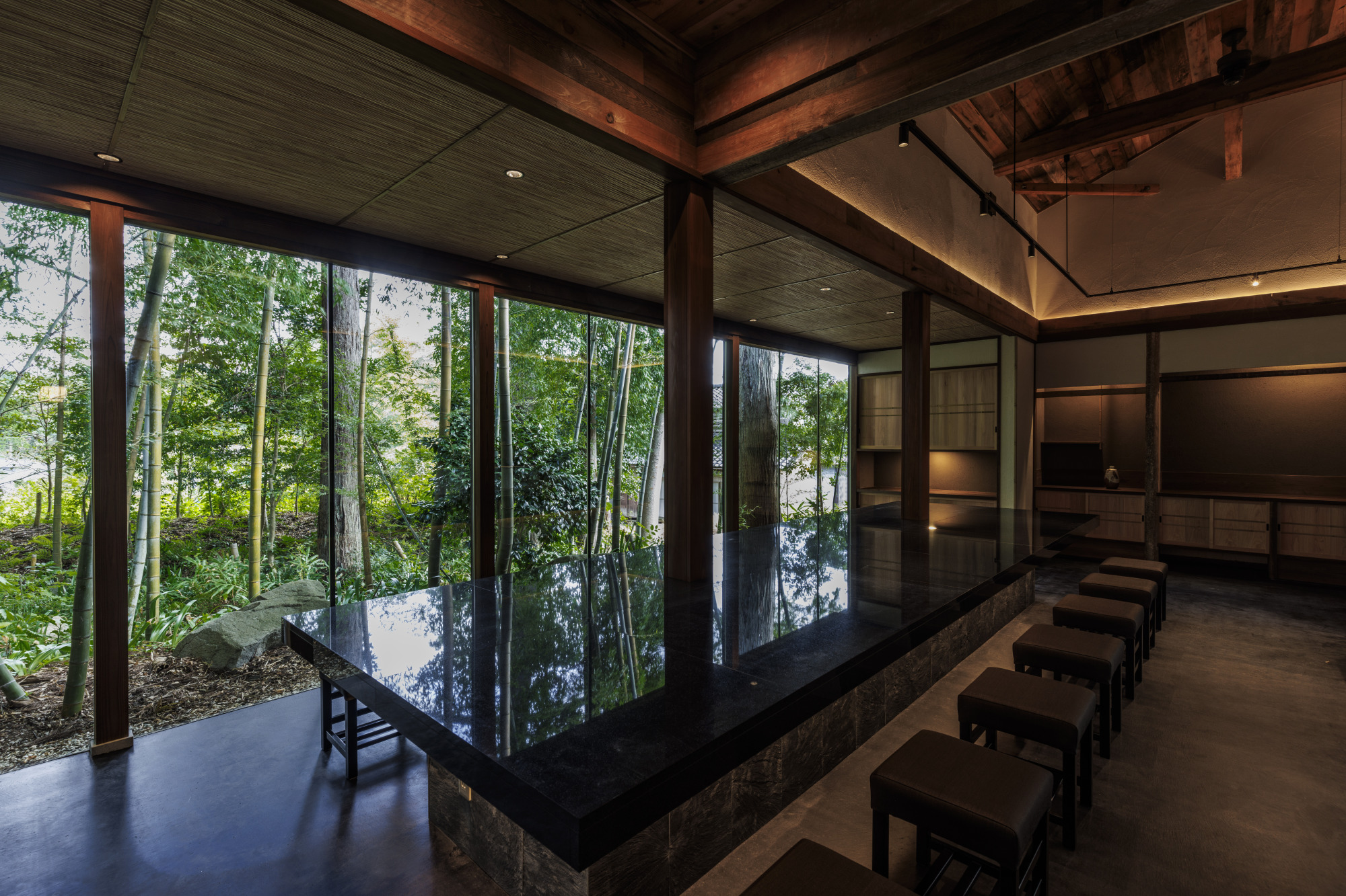 外観も趣があり、店内に一歩足を踏み入れると、竹林を背景にした和モダンで開放感のある空間が広がっています。その美しい景観は、思わず息をのむほどの素晴らしさです。