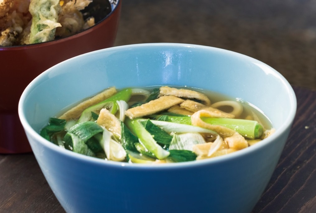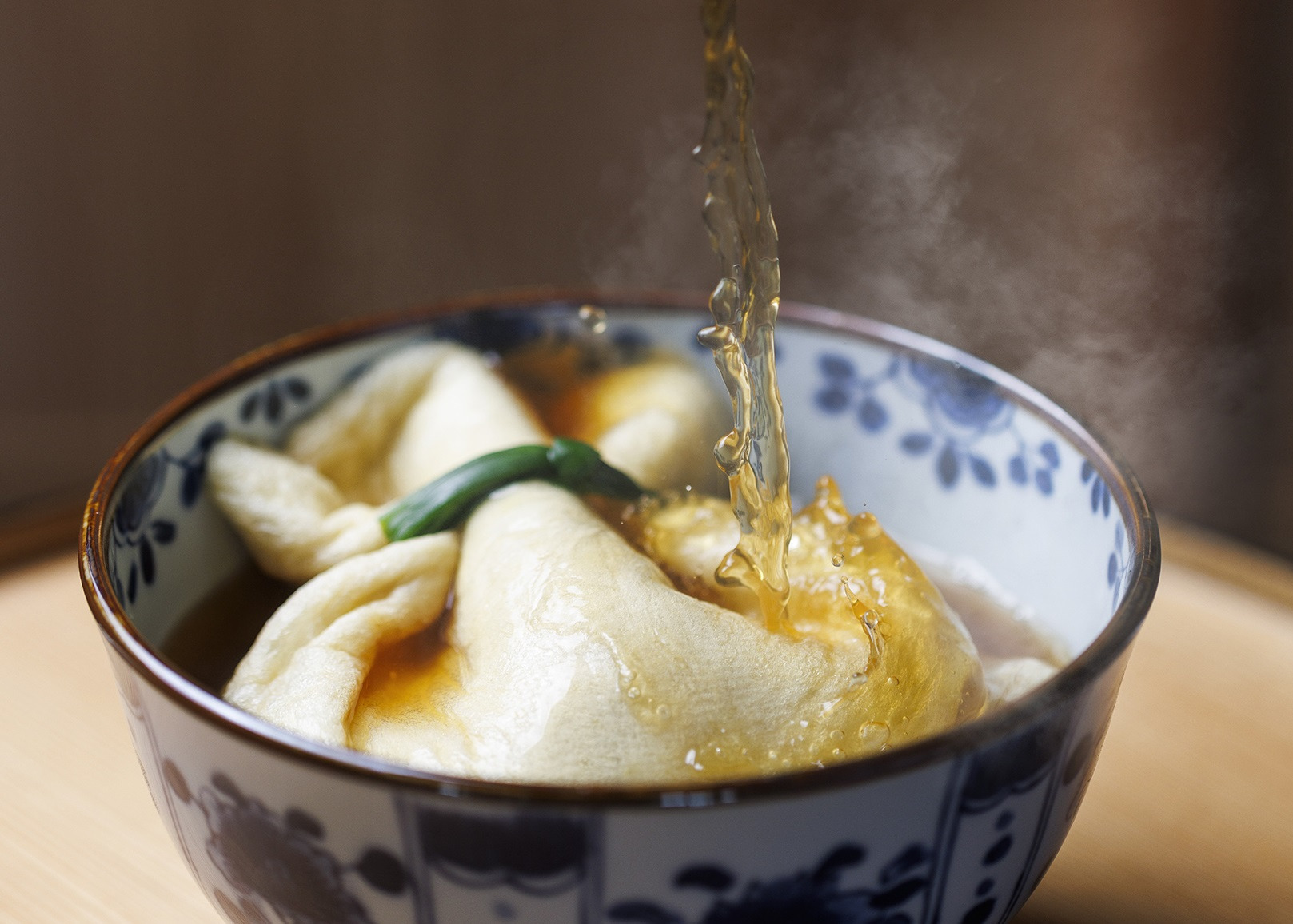 ダシは毎朝たっぷりの鰹の削り節と昆布を使って丁寧に取られ、醤油ベースの少し甘めの味わい。上品で優しく、どこかほっとする味が特徴です。