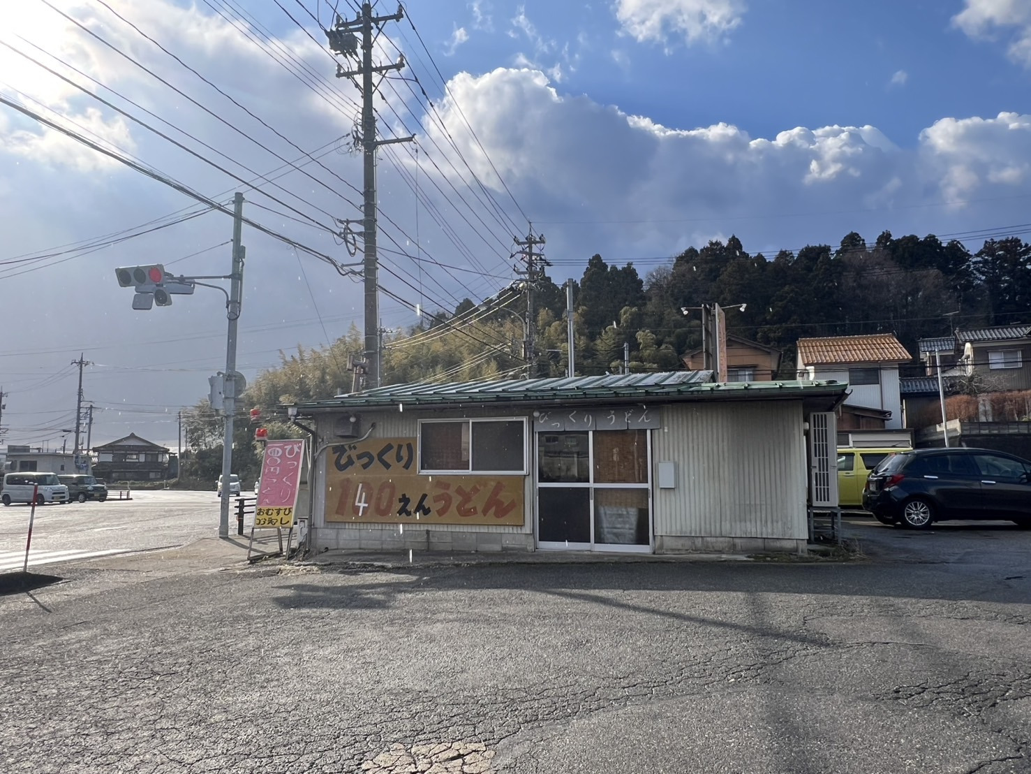 道路沿いに掲げられた「びっくり140円うどん」のインパクトある看板。実は、気になっていた方も多いのではないでしょうか?『びっくりうどん』は、1981年にオープンした、44年の歴史を誇る老舗のうどん店です。