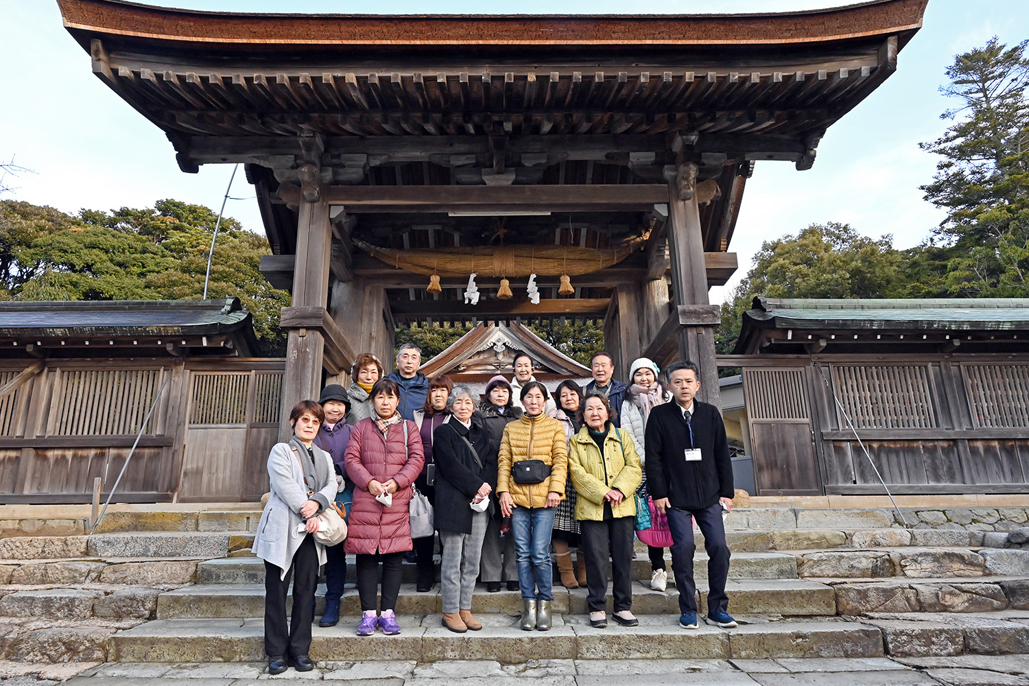 金沢駅を出発した貸切バスは、「のと里山海道」高松サービスエリアの「道の駅 高松」でも参加者を乗せ、最初の目的地「氣多大社」へ向かいます。
