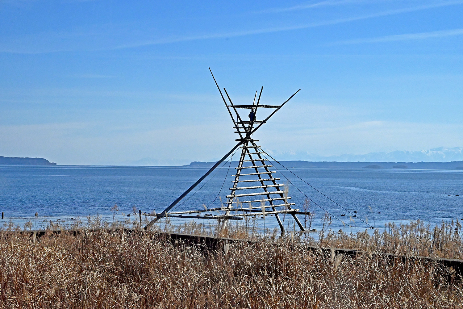 穴水町の海辺のビュースポットといえば「ボラ待ちやぐら」。江戸時代から伝わる日本最古の漁法で、観光用に復元されたものが沿岸に点在しています。周辺では震災による道路の陥没、家屋などの被害も多く発生し、今もその爪痕が残っていますが、震災に耐えて以前の姿を留めていた「ボラ待ちやぐら」は地元で「復興のシンボル」といわれているそうです。