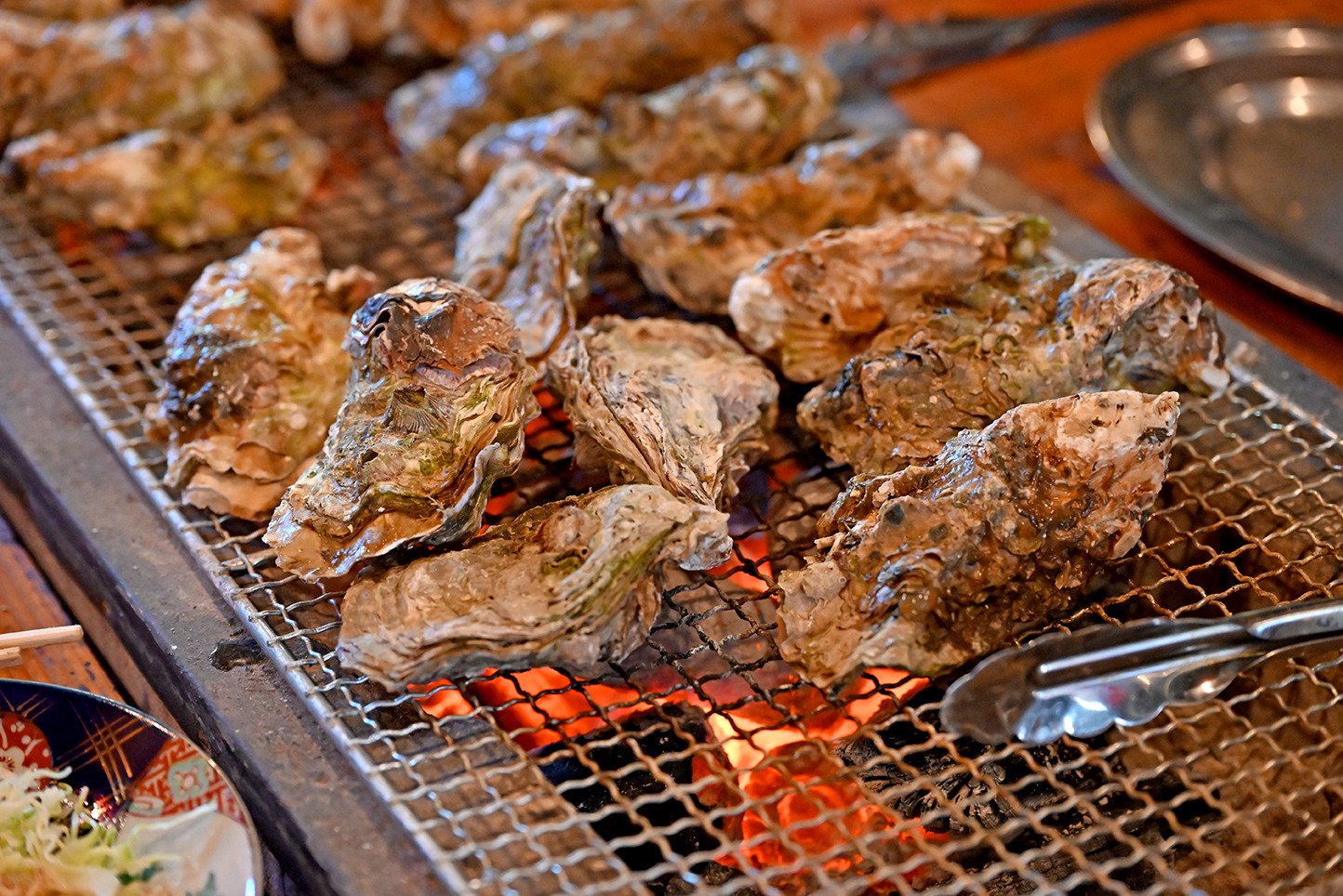 カニを食べるときは無口になるといいますが、カキを焼いて食べるときは、まだかまだかと忙しく会話が弾むのが面白いですね。焼き上がりを待つ間にカキフライやカキ飯もいただきつつ、殻がパカっと開いて焼き上がった熱々の焼きガキをぱくり。至福の瞬間です。