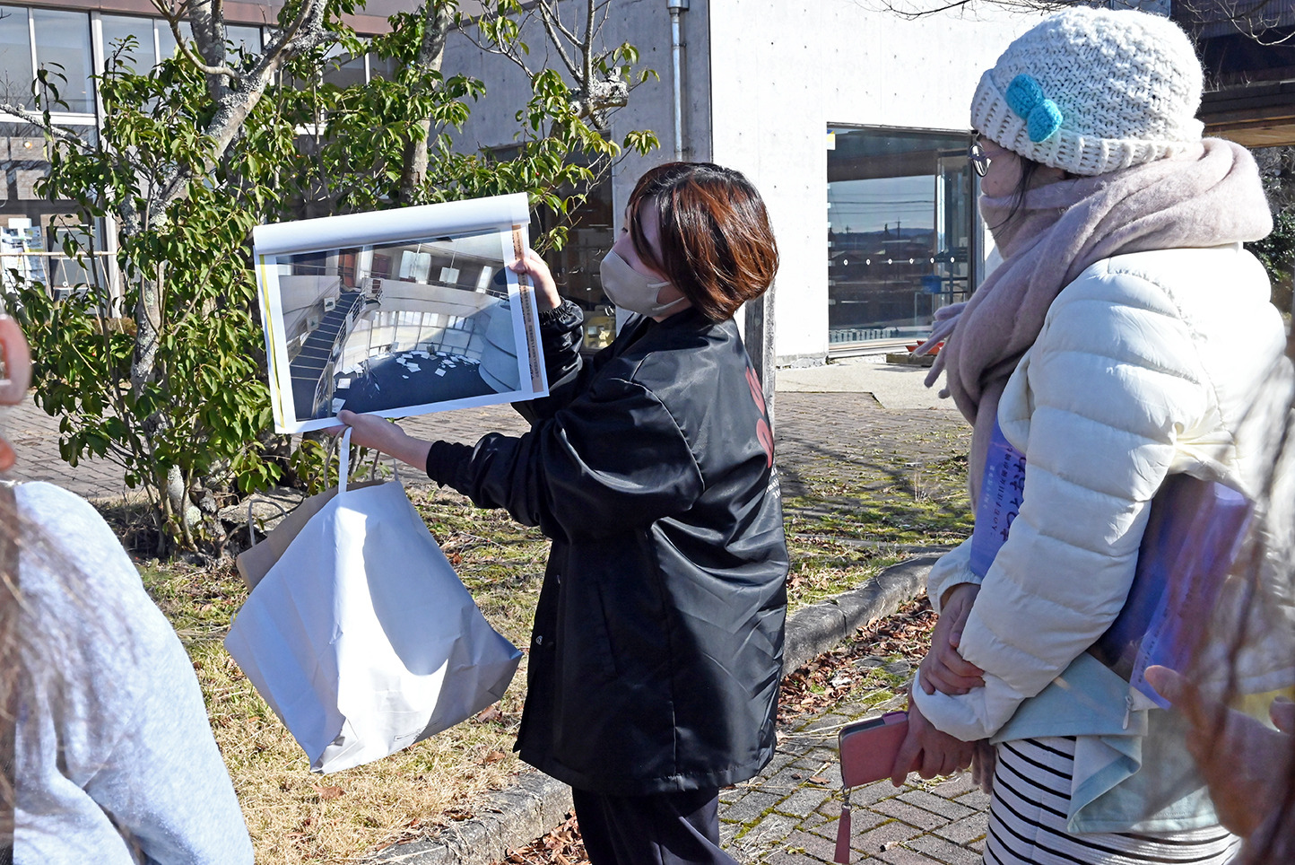 次の目的地「和倉温泉お祭り会館」を訪れる前に、ぐるりと温泉街をバスで巡りました。参加者の皆さんは身を乗り出し気味に車窓を眺め、「どの宿が再開しているのか」「あの宿は今どうしているのか」といった質問が飛び交いました。「今行ける能登」応援ツアーに参加されている方は旅好きで、能登を応援する気持ちが強く、和倉温泉の現状を気にされている方が多かったようです。