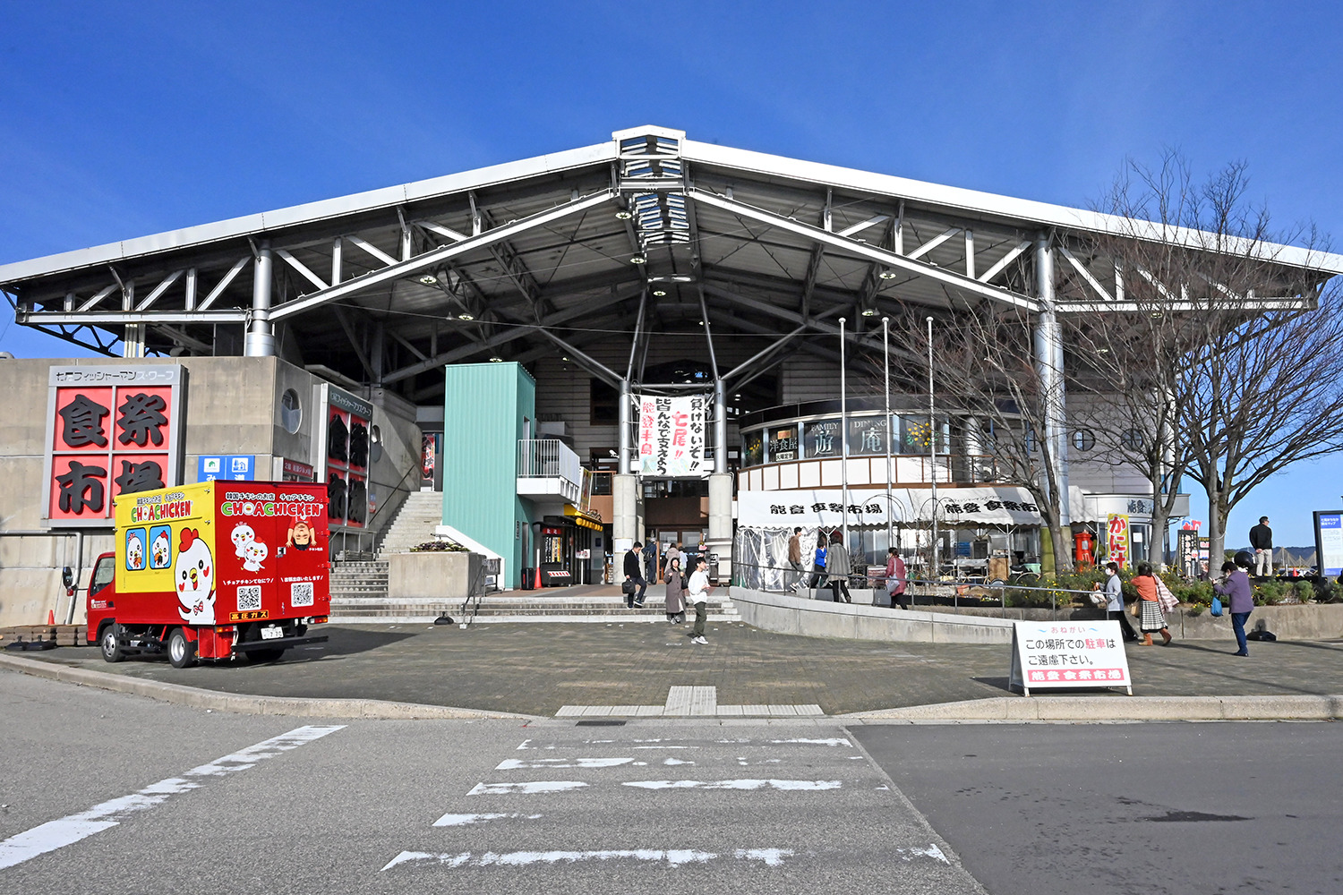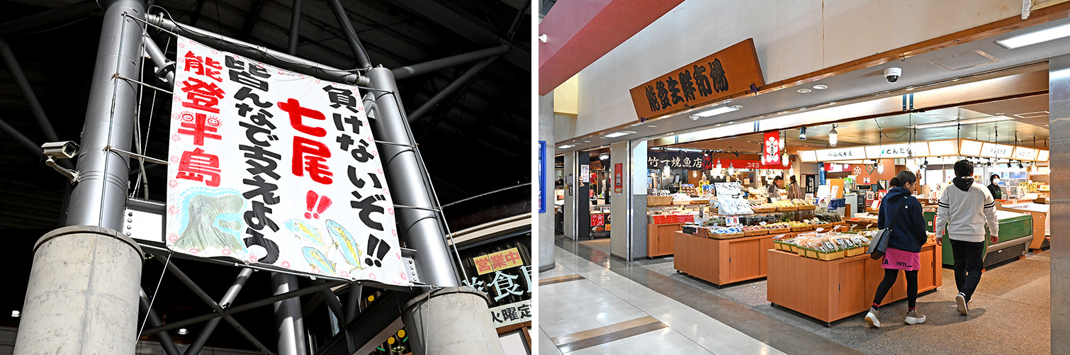 ツアーの最後の訪問地は、七尾市の道の駅「能登食祭市場」です。「能登食祭市場」も地震で建物に大きなヒビが入るなどの被害を受けましたが、復旧工事を進め、2024年5月に一部店舗が仮営業の形で再開。