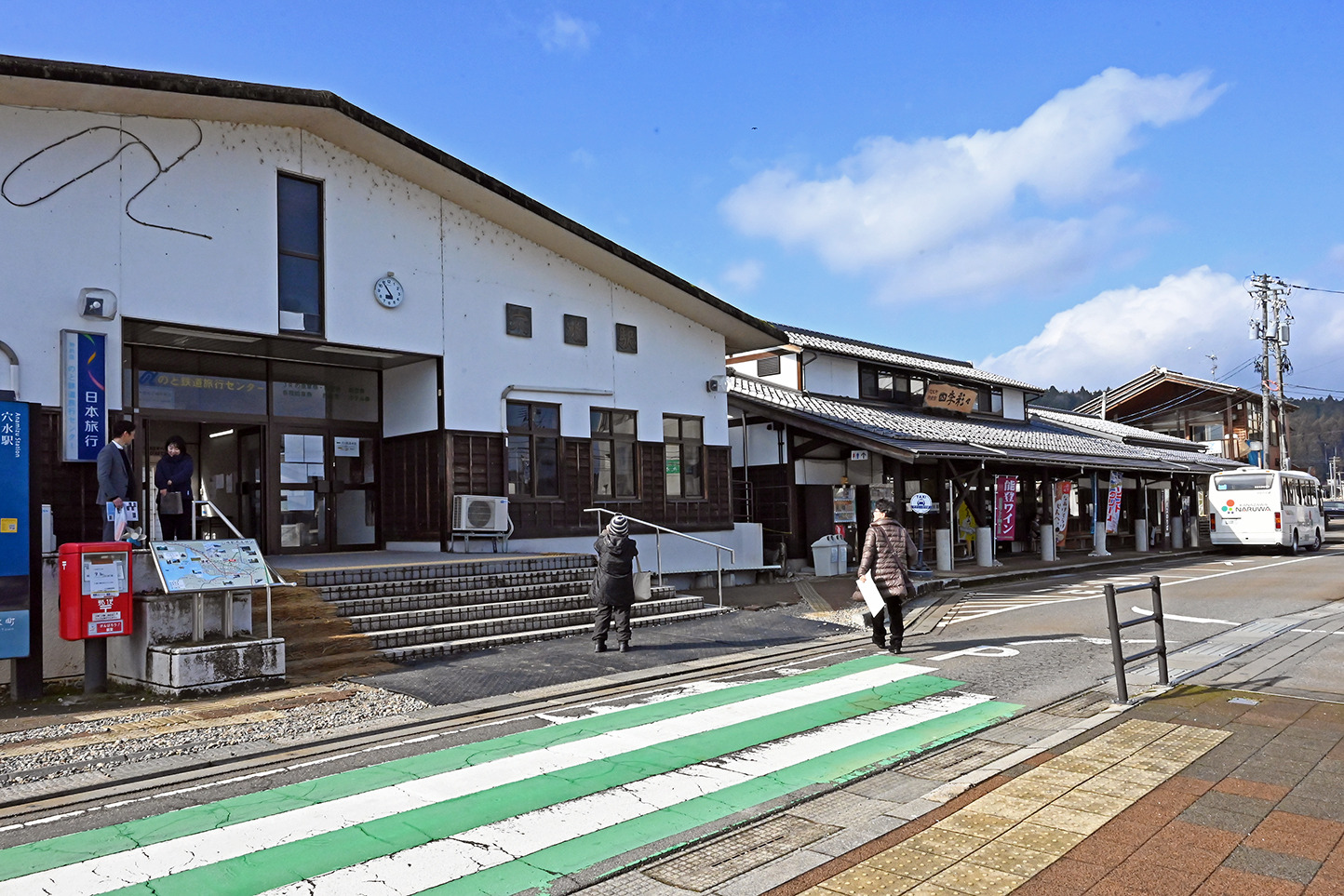 穴水駅に隣接する「四季彩々」「あつあつ亭」前から出発