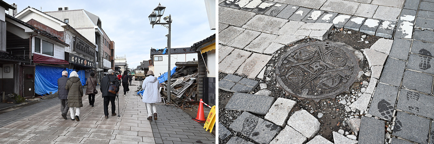 「この通りにあった輪島塗やお土産品の店の被害は大変なもので、私は発災から2日後にようやく来ることができましたが、そのときもまだ火災の煙がくすぶっていました。朝市は露店を設営する営業場所を失い、組合員の多くが自宅や加工場を失いました。通りのビルの再建も簡単にできることではなく、互いに協力し合うことが不可欠です。皆んなで町の復旧・復興に向けて動いています」と冨水さん。