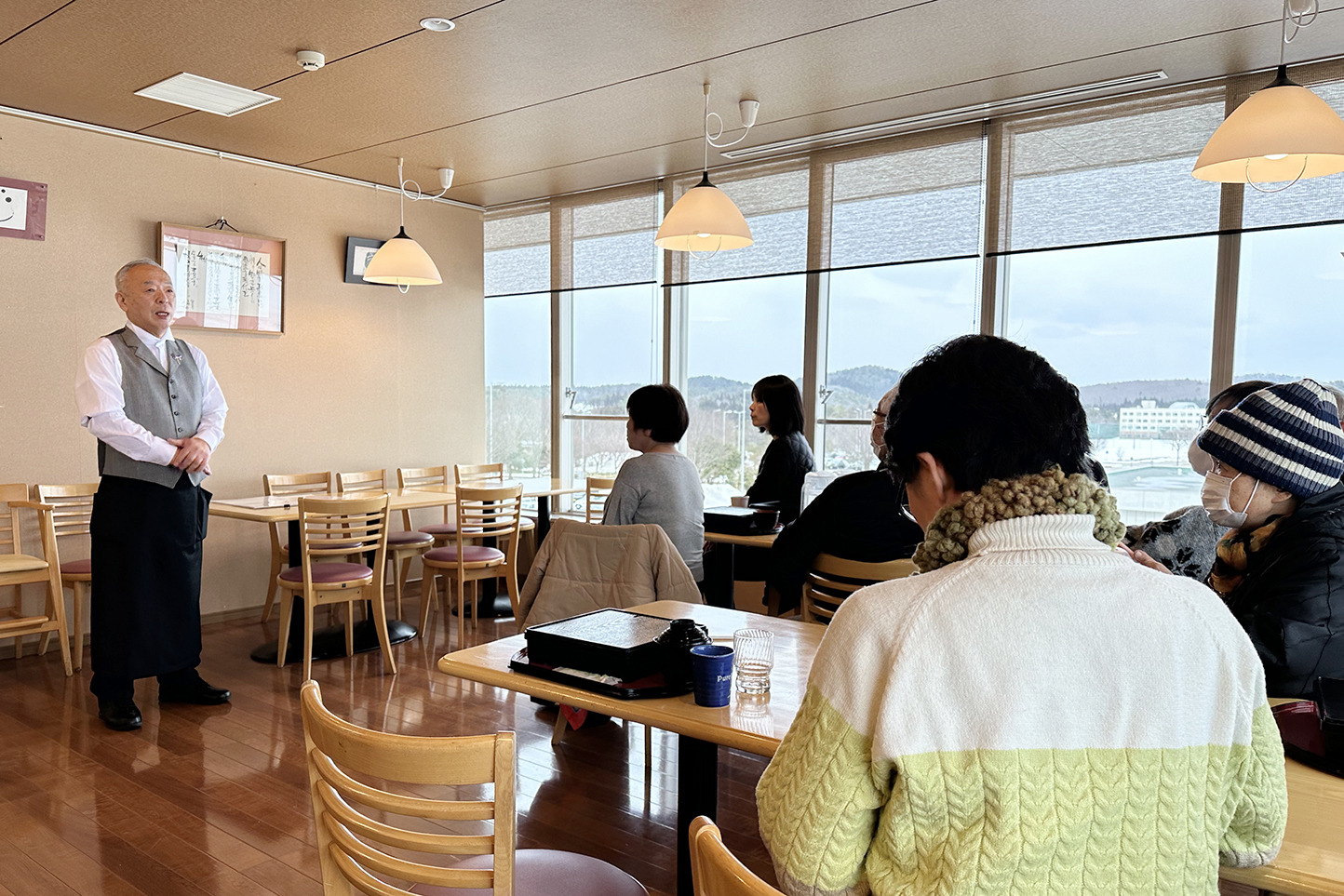 レストランあんのんで昼食、支配人さんから震災発生時の体験談を聞く