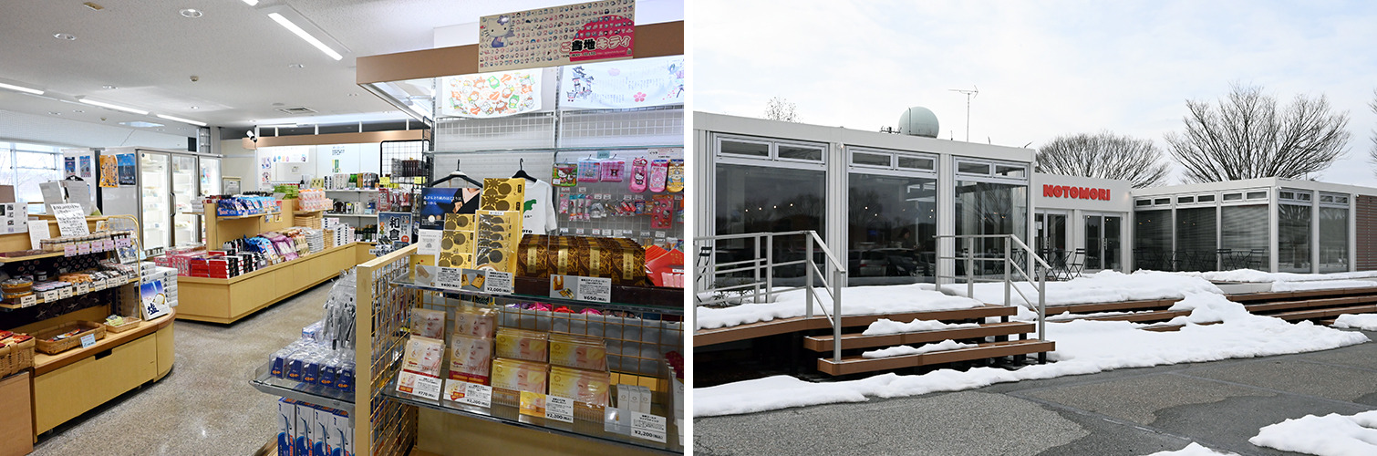 ターミナルビル内には2階の「セレンディピティ」、1階の「つくし」の2つの売店があり能登のお土産品を扱っています。今回は立ち寄れなかった、11月に能登復興の拠点として駐車場にオープンした仮設飲食店街「NOTOMORI(ノトモリ)」も訪ねてみたいですね。