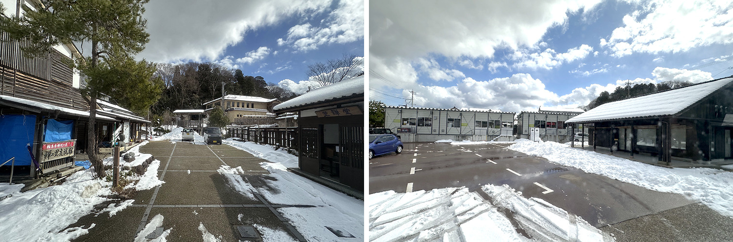 門前の商店街も地震で大きな被害を受けたため、多くの店舗が解体されて更地が目立ち、新たに駐車場や広場に仮設商店街ができていました。壊れた總持寺の伽藍と近隣の町並みを見て、とても心が痛みましたが、高島さんから2度の震災と昨年9月の奥能登豪雨など、度重なる災害に心が折れそうになりながらも、力を合わせて前進する門前の皆さんのことをうかがい、胸が熱くなりました。