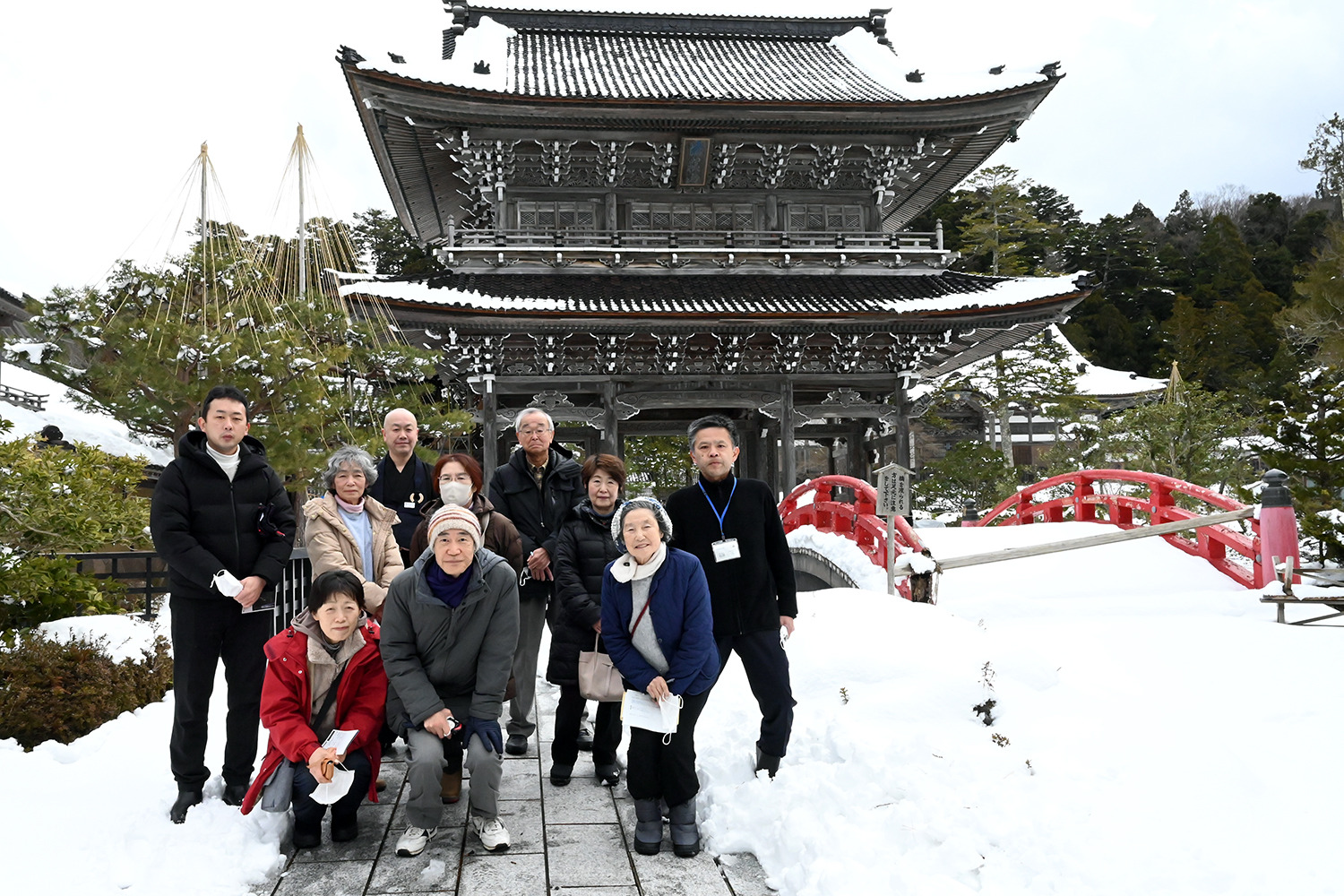 この日は参加者全員が金沢駅からの乗車でしたが、金沢駅を出発した貸切バスは集合地の一つ「のと里山海道」の「道の駅 高松」を経由し、志賀町の「道の駅 とぎ海街道」にも立ち寄って休憩をとり、最初の目的地である輪島市門前町の「總持寺祖院」へ向かいました。