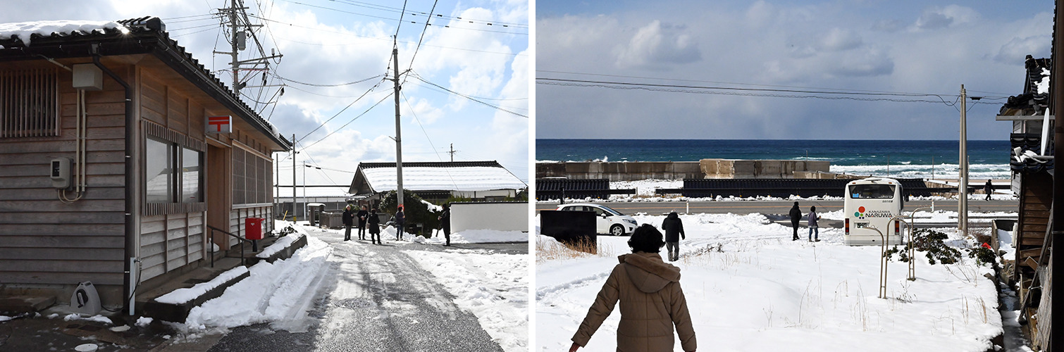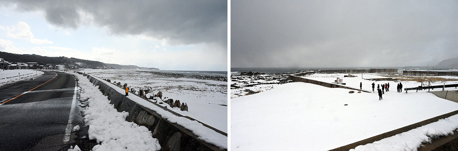 金沢へ戻ると雪が降っていましたが、訪問地の能登の外浦ではお天気に恵まれ、美しい海岸線の景色も楽しめて、能登の今を見ることができました。復旧・復興にはまだ時間がかかりそうですが、今後も能登を訪れたり、思いを寄せることが、能登の応援になることを強く感じた旅になりました。