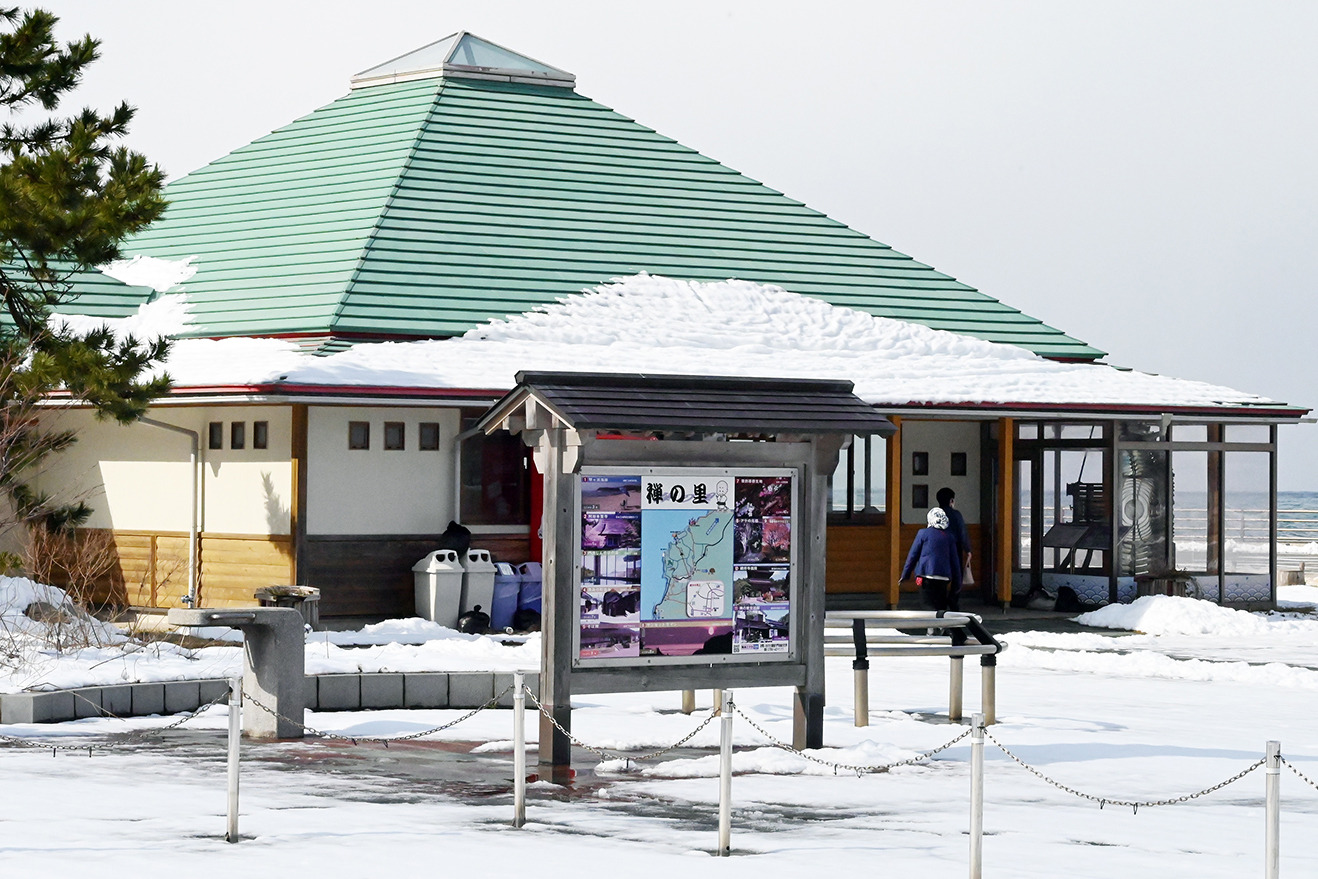 志賀町から輪島市門前町までは、外浦といわれる能登半島の西岸を北上。車窓には荒々しい磯の風景が連なり、機具岩(はたごいわ)やトトロ岩などの奇岩、紺碧の海に白波がたつダイナミックな冬の光景が迫ってくるようでした。