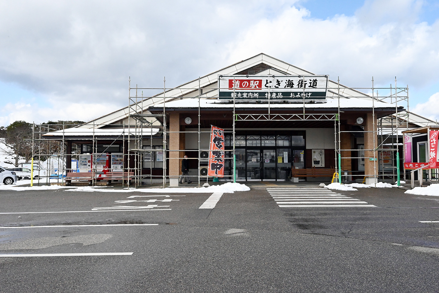 志賀町の「道の駅 とぎ海街道」に立ち寄ると、朝は開店前だった道の駅の駐車場内にできた仮設商店街も営業していました。