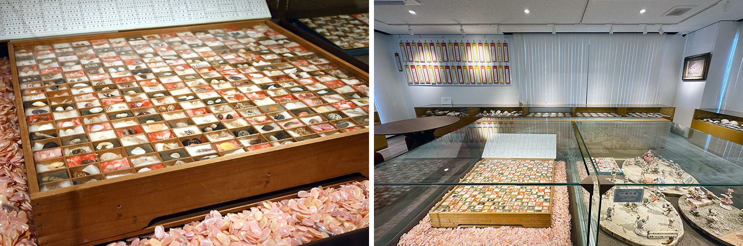 館内に2022年にオープンした「さくら貝資料館」も見応えがあり、増穂浦海岸に打ち寄せられるさくら貝をはじめ、300種もの小貝を集めた標本のほか、世界各地から収集された貝殻が多数展示してあります。地元の貝細工アートも展示され、入場無料で貝の魅力をたっぷり楽しめます。