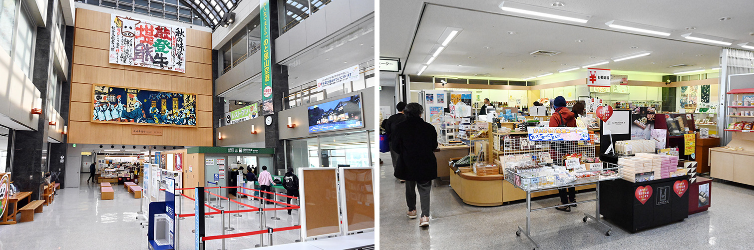 2階の売店「セレンディピティ」は能登各地のお土産品が色々と揃い、1階の売店「つくし」ではソフトクリームやお菓子類など、バス内でのおやつや飲み物の購入ができます。