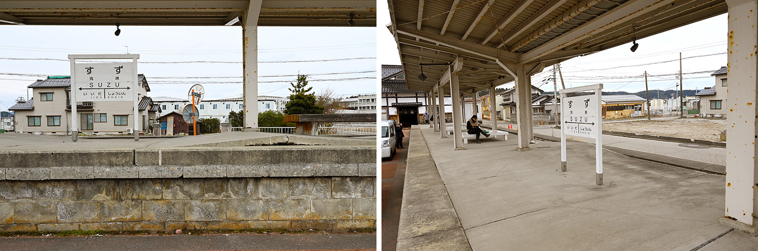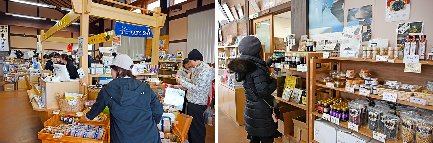 アート鑑賞の後は「道の駅 すずなり」でお買い物タイム。「のと鉄道」能登線の旧珠洲駅の跡地に建てられた道の駅で、珠洲の特産品の販売ショップと観光案内所が入った「すずなり館」があり、旧珠洲駅のホームや線路も保存されています。
