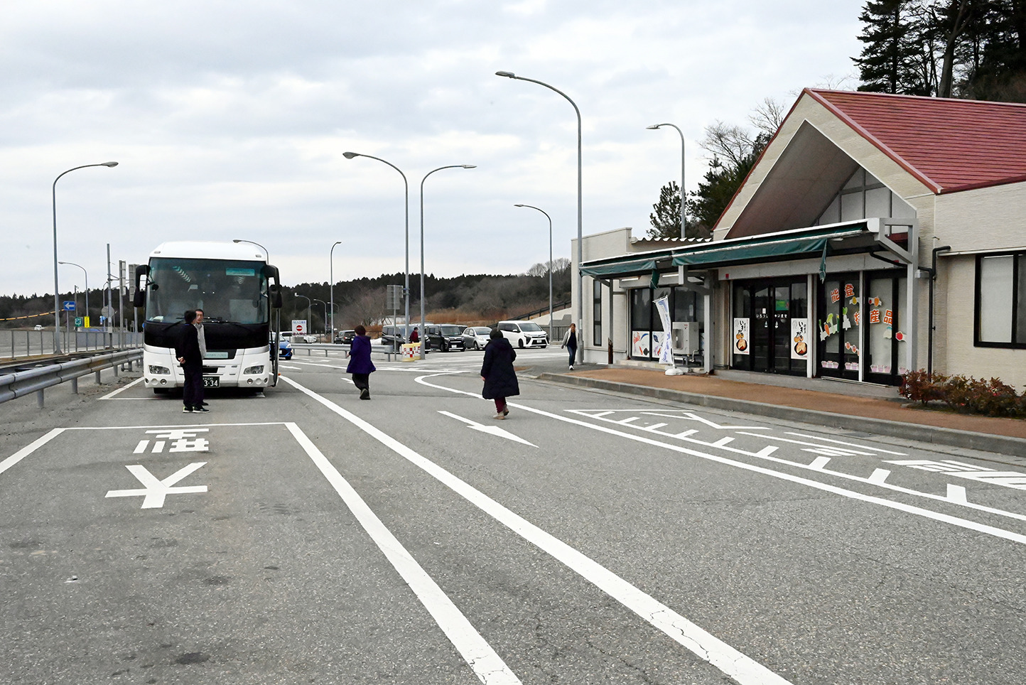 見附島でガイド付きの見学を終えて帰路につきました。帰り道も貸切バスは珠洲道路、海沿いの国道249号などを通り、七尾市からのと里山海道に入り、志賀町の西山パーキングエリアで15分ほど休憩しました。
