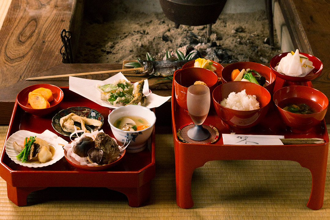 各宿では、それぞれが工夫を凝らした地域の味を感じられる郷土料理が提供されています。決まったメニューはありませんが、旬の食材や地元の名物をふんだんに使った料理を楽しむことができます。