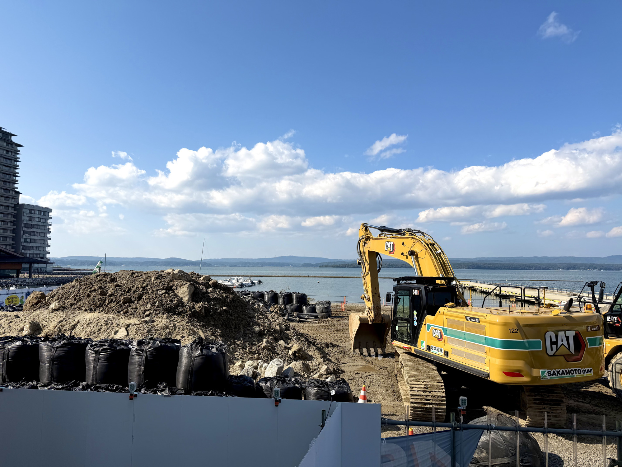 一方で、海辺では護岸工事を進める重機の音が響き、プレハブが連なる仮設商店街では飲食を楽しむ人の姿が見られるなど、確かな歩みも。