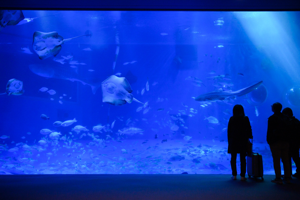石川県七尾市の能登島に位置する「のとじま水族館」は、ジンベエザメが悠然と泳ぐ日本海側最大級の巨大水槽や、国内最大級のイルカのトンネル水槽、プロジェクションマッピングによる海中散歩体験が魅力の、体験型の水族館です。イルカ・アシカショーや生きものとのふれあいも充実しています。