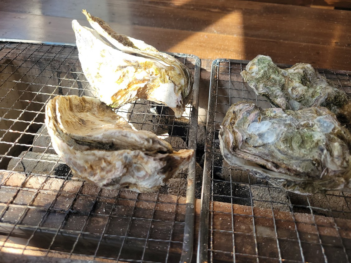 焼き牡蠣は、加熱し続けると殻が乾燥し、突然「パーン!」と爆ぜることがあります。