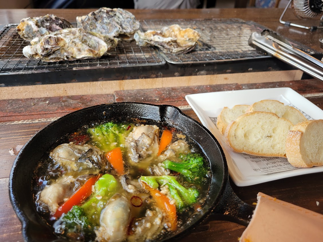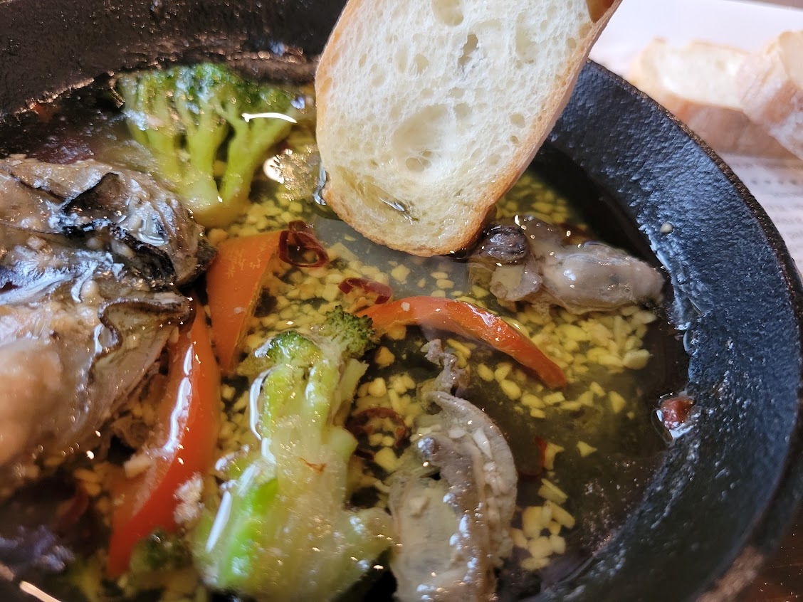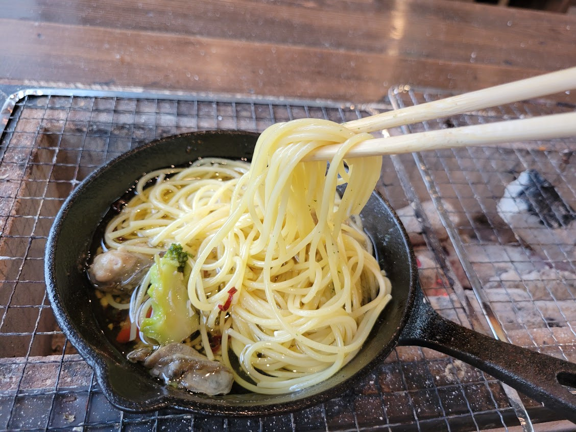 バゲットをオイルに浸して食べるのはもちろん、残ったオイルで楽しむ「追いパスタ」を注文できるなど、最後まで牡蠣の旨みを余すことなく味わえます。