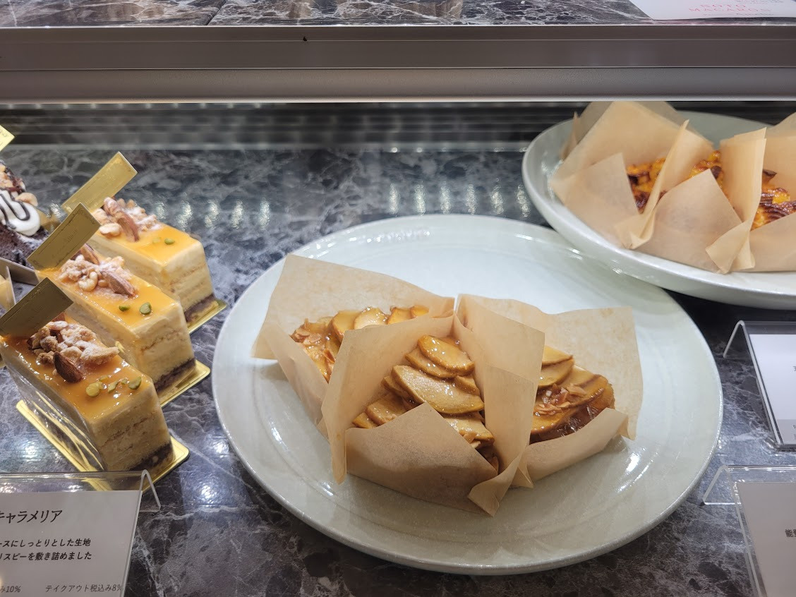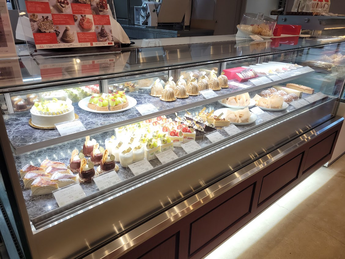 ショーケースには、国際的な技術と地元・能登への愛が融合した、美しいスイーツがずらりと並びます。