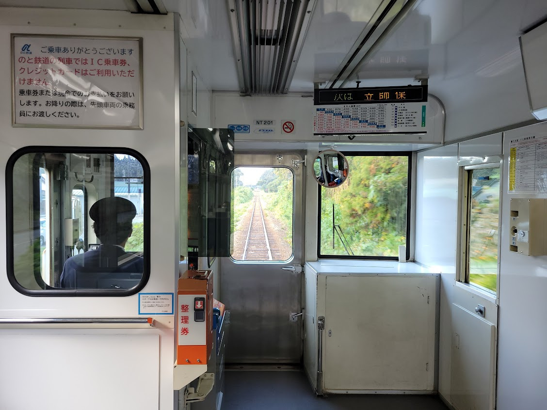 のと鉄道では、運転士の横に立って正面の景色を楽しめる車両もあります。